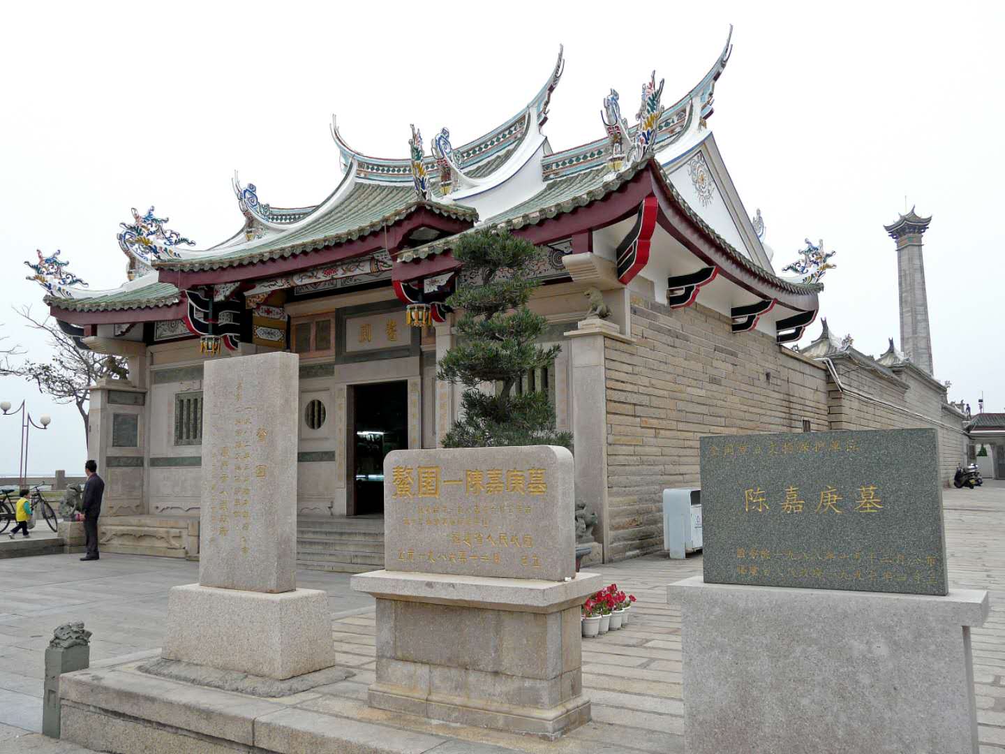 1992年,为完成陈先生的遗愿,在鳌园前的海滩上建设“嘉庚公园”。公园占地3万平方米,周边建了一组仿古的歇山琉璃亭台楼阁建筑群,总建筑面积5500平方米,与鳌园融成一体,更是秀美,于1994年10月陈嘉庚先生诞辰120周年竣工,向游人开放。