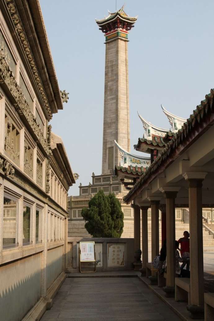 陈嘉庚陵墓,墓坐子向午,呈寿龟形,墓盖用十三块六角形的青斗石镶拼而成,光可鉴人。
