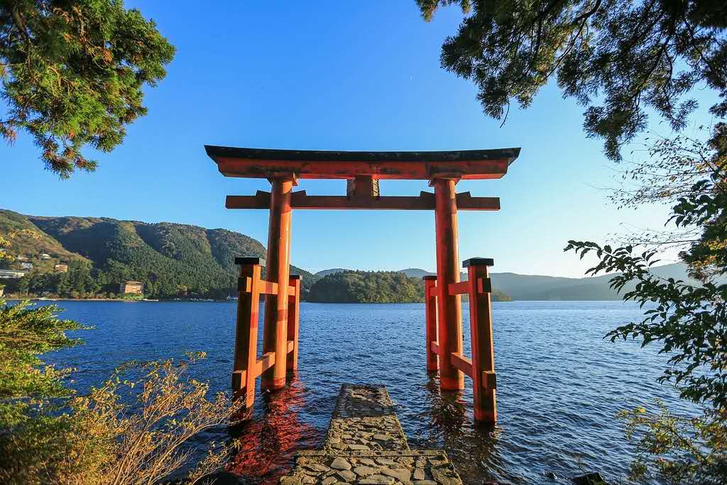 箱根的芦湖为火山湖,海拔724米,方圆20千米,面积7平方千米,湖最深处达45米, 湖水清澈湛蓝。晴天时可从这里看到终年积雪的富士山,大涌谷附近设有自然科学馆,是江户时代幕府设置的关卡,在关所的定番所内陈列着当时行人携带的“身份证”、捕吏使用的短枪、长柄大刀等1000多件文物以及栩栩如生的关所检查人员的塑像,现为重点保护文物。 箱根的温泉久负盛名,著名的有“箱根七汤”(指最著名的7个温泉),是疗养的好地方。坐上登山电车、电缆车和空中吊车登山,可欣赏逶迤的溪谷、富士山的雄姿和芦湖的旖旎风貌。
