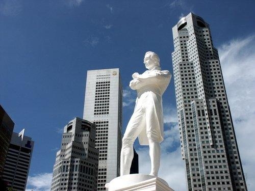 莱佛士爵士铜像位于新加坡河畔的泊船北码头,为纪念莱佛士爵士这位新加坡的开埠者而立。