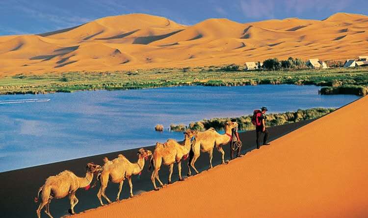 银肯塔拉沙漠沙丘连绵分布,景色壮观,嫩黄色的沙漠,一望无垠,景区内有东西500米长的沙湾,呈弯月状,版权所有山东聊城聊之旅国际旅行社有限公司,转载必究!沙丘高度110米,坡度为40度,从沙丘顶部滑下,沙子会发出轰鸣声,形成著名的“响沙”奇观,是罕见的自然景观。
