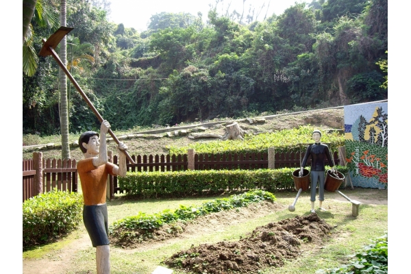 昔日农耕工具、农民劳动情况展区:介绍昔日平整土地工作的模型和犁作工具
