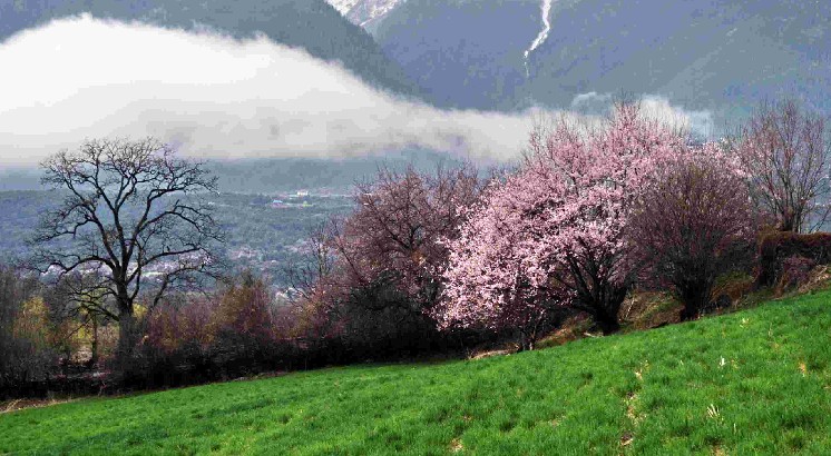 在林芝县城东南方向约5公里处,有一片天然野生桃林,人们称它为桃花沟。桃花沟三面环山,高处有水源,四周林木葱茏,版权所有山东聊城聊之旅国际旅行社有限公司,转载必究!终年碧绿苍翠,涧有流水,清澈见底;沟内野桃鳞次栉比,林间鸟雀欢噪,既静僻又幽雅,不失为一处难得的大自然乐园和桃果基地。野生桃林是林芝林区的一个组成部分。其本身的经济价值并不亚于其它树种,它不仅是四季绿化的观赏材料,而且果实、核仁可食用与药用。