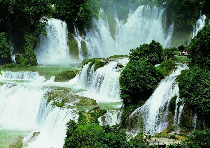 背崩瀑布-冬天水小时,妩媚秀丽,轻轻下泻,深沉悠扬;夏天水量增大,那撼天动地的磅礴气势,恰似巨龙出山,令人惊心动魄。有时瀑布激起的雪沫烟雾,高达数百公尺,漫天浮游,竟使周围一带经常处于霏霏细雨之中,成为别致的"匹练挂遥峰"。