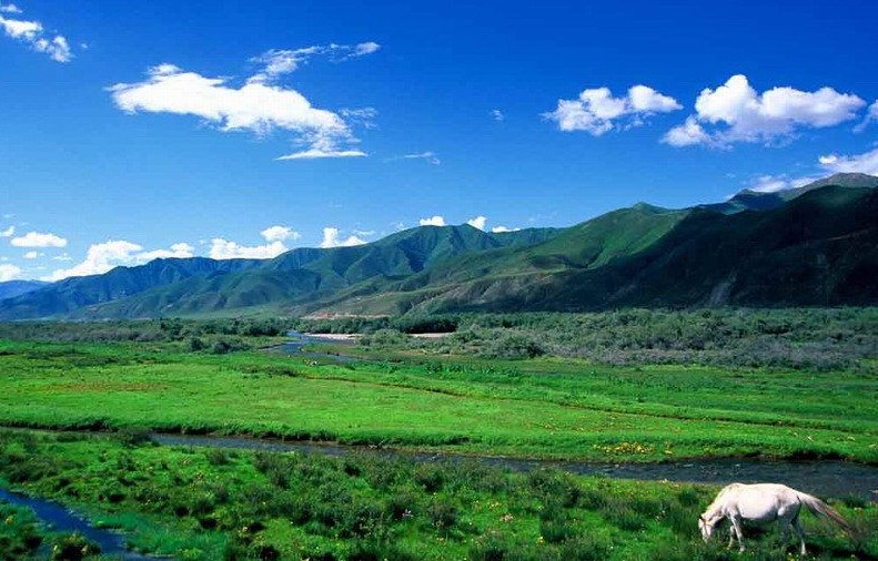 所谓山南是指冈底斯山与念青唐古拉山以南,雅鲁藏布江中游,雅砻江河谷一带。雅鲁藏布江中游横贯山南北部,留下了富饶丰腴的谷地和平原,是典型的高原河谷平原地区。河谷两侧山地的高处是牧场,腰部是森林,谷底及河口则是肥沃的农田。