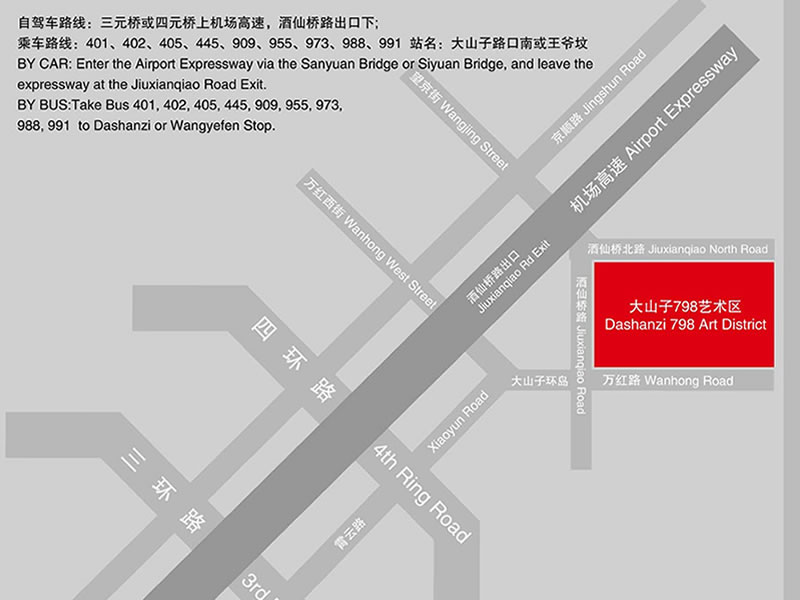 要改进798艺术区目前可进入性差的现状,增加到798艺术区的公共交通。建议位于798艺术区二号和四号门的公共汽车站名改为“798艺术区”或“大山子艺术区”,以强化人们对798艺术区的认知程度,让更多的人知道798艺术区的位置。增加北京各区县抵达798艺术区的专线车和过路车。另外,在新出版的北京交通地图、旅游地图和北京街头设立的电子查询地图中,标明798艺术区的方位。在介绍和宣传北京的文化、旅游机构的书籍和小册子中明确标出798艺术区并介绍艺术区的情况,争取让798艺术区进入外国人编的旅游手册中。通过一系列手段和办法,让中外旅游者知道798,了解798,访问798。