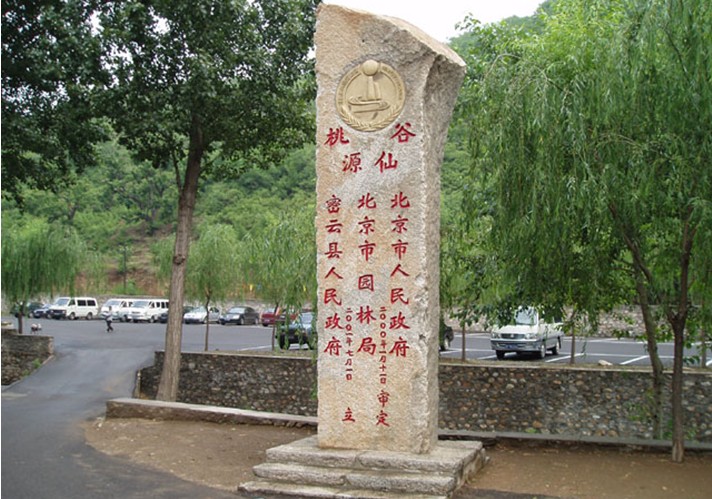 北京市风景区名胜区---桃源仙谷,距北京90公里。景区东起密云水库,西至观峰台之巅。总面积16平方公里。一湖六瀑十三潭,天画三峰四洞联,近看长城似龙,远望云海奇景观,等70余个景观镶嵌其中。构成了世外桃源的天然风景画廊。整个景区,山峦连绵,峡谷幽深,森林茂密,以湖、瀑、潭、洞、多树而著称。四季景致,让人赏心悦目。春季,桃花遍山,野花烂漫;夏季,山风清凉,是避暑的胜地;秋季,硕果累累;冬季,银装素裹,冰瀑倒挂,是强身健体的好去处。