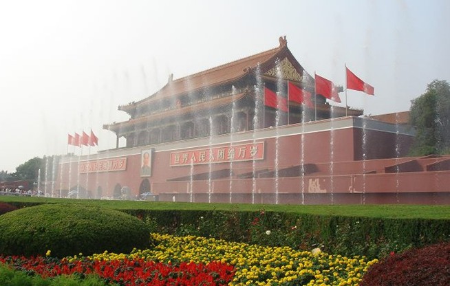天安门在中国的明朝、清朝两代是两代皇城的正门。天安门始建于明永乐十五年(1417年),原名“承天门”,取“承天启运”、“受命于天”之意。 当时天安门是一座黄瓦飞檐、三层楼的五洞牌坊,朱漆金钉,光彩夺目。一条笔直的中心御道,穿过端门,直通皇宫正门的午门。御道两侧,按左宗庙、右社稷的传统建制排建。御道两侧增筑红墙,一直延伸到天安门外,与两道千步廊相连,成为一个封闭状态的宫廷广场。广场外围,左为文官官署,右为武官官署,充分显示了中央集权的浩浩声势。清顺治八年(1651年),改建为“天安门”,取“受命于天”、“安邦治民”之意。天安门城楼面前是封闭状态的宫廷广场,文武百官到此下马,庶民百姓不得入内,探头一看,即犯“私窥宫门”的重罪,格杀无赦。
