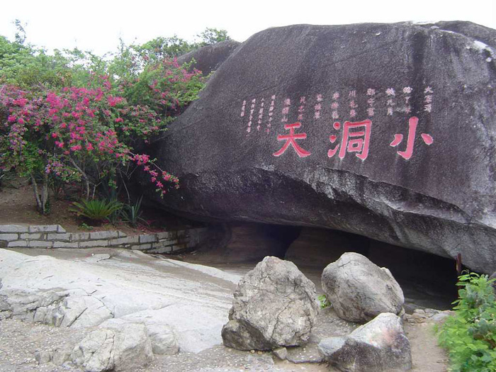 自唐宋以来,南山大小洞天即以神仙洞府著称于世,与传说中的东海三仙岛蓬莱、瀛州、方丈相媲美,大小洞天风景区号称南海仙岛,曾吸引许多求仙道之人。据史料记载,宋代著名神仙道士,南宗五祖白玉蟾,因喜南山神秀,归隐于此,修建道观,传播道家文化哲学思想。目前景区内留存有”仙坛”、”仙人足”等历史遗迹,以及多处游记诗文。南宋淳佑年间,郡守毛奎就任于此,因性欣黄老、酷爱山水,于此南山屡加探访,并先后发现大、小洞天。逐对这一景区进行开发,留有《大小洞天记》等石刻文字。道家素有10大洞天,36小洞天和72福地之说。现在景区海边巨崖之下有一处”小洞天”,上有古钓台。据《崖州志》记载,还有一处”大洞天”,洞内有石桌、石凳、小溪环绕,宛若仙境,且确实有人去过,但现今无人找到,充满神秘色彩。更为神秘的是,郡守毛奎因开发南山大小洞天有功,御任之时,顿司成道、众随从挽留不及,飞身而去。后人因景仰其仙风,于其飞身处南山脯修建毛知军祠,予以祭祀。