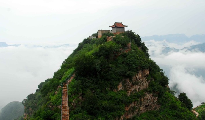 北武当山自然风光秀美,文物古迹众多,山势奇特,五峰相望,顶顶有庙,峰峰插天,杆被繁茂,满山葱郁。主峰海拔1437.7米,真武庙建在山顶处,庙内供着真武大帝。北顶老爷顶,南顶奶奶顶,中间有一天桥连接。版权所有山东聊城聊之旅国际旅行社有限公司,转载必究!置身山顶,极目远望,遍山水云水,如入仙境。四周山形千姿百态,处处显现着大自然的灵气。下庙的药王庙、碧霞丹君庙、真武庙,无不体现着武当道教和太极养生文化。邢台北武当山景区位于邢台市沙河市的太行山深处,是神话《北游记》故事的发源地、国内著名的道教圣地。