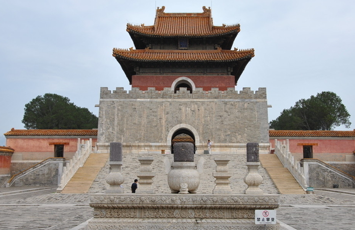 二、首创大殿内东暖阁建佛楼之制。在泰东陵以前建的皇帝陵和皇后陵,均无佛楼之设。泰东陵则在隆恩殿东暖阁建了佛楼,为一层。这与孝圣皇后笃信佛教有关。从此以后,凡皇帝陵均建佛楼。皇后陵只慈禧陵建了佛楼。凡以后建佛楼均为上下两层。