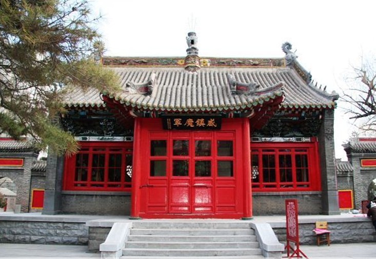 整个庙宇进深三层。第一层是弥勒殿,殿内供奉弥勒佛坐像,殿前有一座汉白玉石碑,碑文记载着建庙的详细经过;第二层是大雄宝殿,这是整个庙宇的中心,也是最大的一座建筑;第三层是西方三圣殿,该殿为二层歇山式建筑,楼上为藏经楼,楼下供奉阿弥陀佛、大势至菩萨和观世音菩萨三圣像。西方三圣殿的两侧是大雄宝殿的后院配殿,其中东配殿是观世音菩萨殿,西配殿是地藏王菩萨殿。与前两个院落相比,这里松柏参天。鸟语绕梁,营造出一种古朴、玄远的宗教氛围。