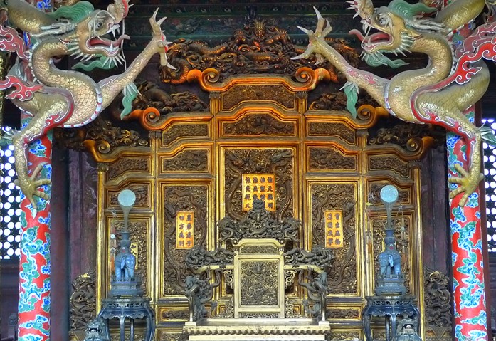 崇政殿:又称“金銮殿”,通称“正殿”,是皇太极处理政务、接见使臣的场所,清代历朝皇帝东巡祭祖时也在此听朝理政。面阔五间,绿剪边黄琉璃瓦,单檐硬山顶,前后有出廊,围以石护栏。殿内为彻上明造,和玺彩绘,宝座后有贴金龙扇屏风,旁为贴金蟠龙柱。殿外庭院左右有飞龙阁、翔凤阁、东七间楼和西七间楼。