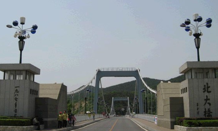 该桥1984年5月开工,三年后正式通车。雄伟的桥台,高高的桥塔架联接着长长的主钢索,通过吊索使一个平展的桥面穿狭谷而过,气势雄伟,磅礴苍劲,像一高大巨人双臂把两座山岭联接起来。过了北大桥继续向西走,就来到了燕窝岭景区和秀月峰景区。 位于大连市滨海路上,全长228米,三跨钢悬索桥,主跨132米,边跨2*48米,宽12米,主塔为钢箱截面,混凝土重力锚锭,造价1400万元。版权所有山东聊城聊之旅国际旅行社有限公司,转载必究!桥梁全长228米,中跨132米,边跨2*48米 。 桥面宽12米,其中车行道9米,人行道2*1.5米 。桥上双向两车道,桥上纵坡 0%。三跨悬索桥,跨径为48米+132米+48米,加劲梁为钢桁架,梁高3米 • 主塔为钢箱截面,混凝土重力锚碇 .
