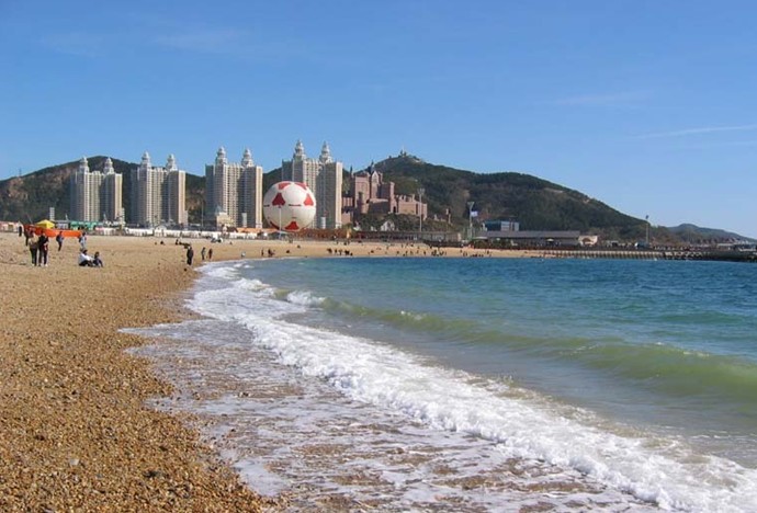 星海湾海水浴场是目前中国最大的人工海水浴场,由3个小浴场组成。沙滩全长2000米,全部由从北戴河运进的优质沙铺成。