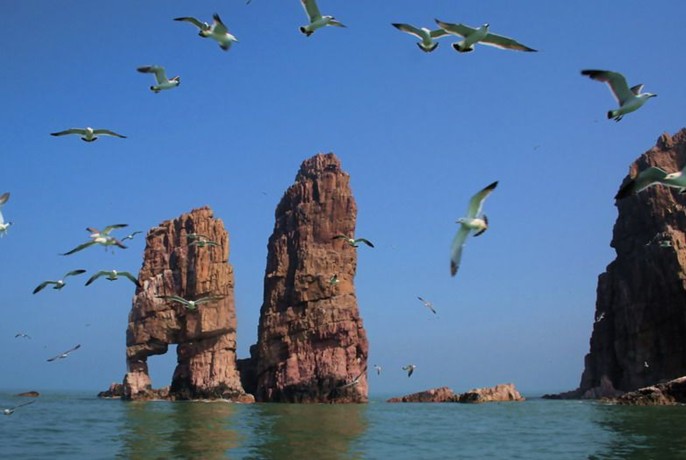 岛上大树、小草、灌木丛漫无目的地长,和缓的山坡上种植着各种农作物,乡间小路崎岖蜿蜒,路边的野花自由而放肆地开放。随便走走,就能看见几处极好的天然浴场,不远的礁石上成群的海鸥或嬉戏或盘旋。亲近黄海明珠,体会海岛自然,享受垂钓生活。