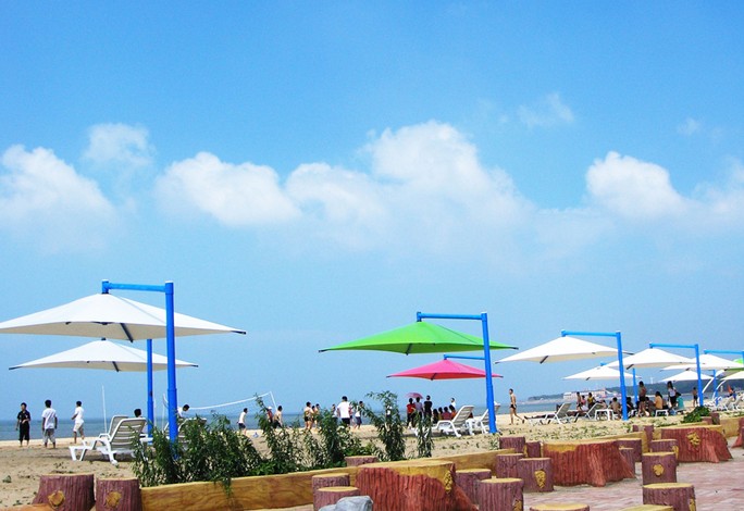 风景区内的仙浴湾天然海水浴场海岸长5公里,水清沙优,海阔景美,水浅浪小,海底平坦。这里的海沙有二氧化硅,质细而均匀,对沙浴者可增强血液循环,对腰腿病和关节炎疗效甚佳。当地又有许多疗养院,住宿、餐饮等服务设施齐全,是良好的海滨旅游、度假、避暑胜地。