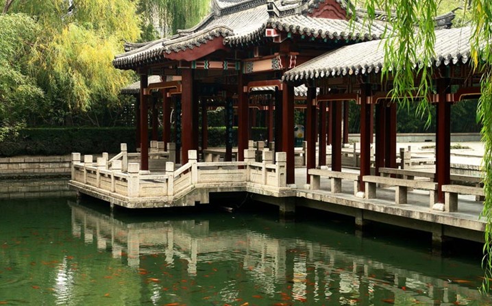 五龙潭又名净池、乌龙潭、龙居泉,古时曾是大明湖的一部分。相传昔日五龙潭颇有灵性,每逢大旱,在潭边祈雨必灵。故元朝初年,在潭边建庙,内塑五方龙神,此后便称五龙潭。