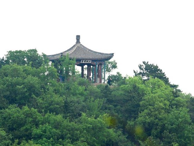 南山积雪亭位于山庄正北、青枫绿屿南侧的山顶上,是一处借景之作,为“康熙三十六景”第十三景。是山庄的制高点之一。