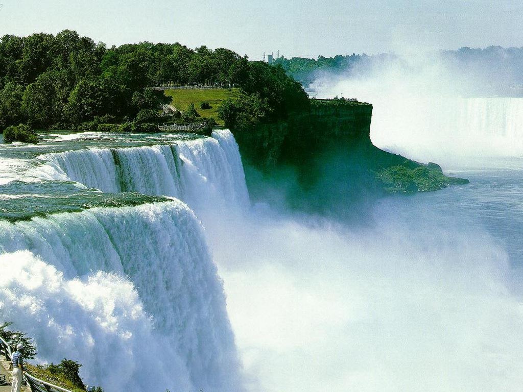 山飞海立是对壶口瀑布磅礴气势的形容,黄河穿千里长峡,滔滔激流直逼壶口,突然束流归槽,形成极为壮观的飞瀑,仰观水幕,滚滚黄水从天际倾泻而下,势如千山飞崩,四海倾倒,构成壶口瀑布的核心景观。 晴空洒雨。悬瀑飞流形成的水雾飘浮升空,虽然烈日当空,但在瀑布附近,犹如细雨,湿人衣衫,这也是水底冒烟所产生的又一有趣的景观,一般越接近河面水雾越浓密,因而,在水底冒烟时,岸边观瀑难免衣服湿漉漉,如在轻洗。