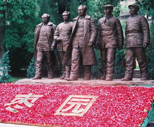 延安革命旧址的陕西省延安市。1937年至1947年,延安一直是中共中央所在地和陕甘宁边区首府,是中国革命的指导中心和总后方,是革命圣地。延安革命旧址包括凤凰山中共中央旧址,杨家岭中共中央旧址,枣园中共中央书记处旧址,王家坪中共中央军事委员会、八路军总司令部旧址,陕甘宁边区政府旧址等。为中国重点文物保护单位。凤凰山革命旧址在延安北门内凤凰山麓。1937年1月,中共中央由保安(今志丹县)迁到这里。中共中央在此先后召开政治局扩大会议、中国代表大会、扩大的六届六中全会等重要会议。凤凰山麓有毛泽东旧居,毛泽东曾在这里会见白求恩大夫。这里还有红军总参谋部旧址、朱德旧居、刘伯承旧居等。1938年11月,日军飞机轰炸延安城,中共中央机关由此迁往杨家岭。