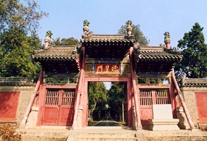 穿过亚圣庙石坊,便进入孟庙第二进院落。院内古柏苍苍,翳天蔽日,虽历经沧桑,依然枝干挺拔。院中有一条砖铺甬道,直通“仪门”。这是一座歇山式斗拱承托三启门洞的高大门楼。门额上悬一竖匾,版权所有山东聊城聊之旅国际旅行社有限公司,转载必究!上书“泰山气象门”5个大字。故仪门又称泰山气象门。“泰山气象”4字取义于程子之说:“曰仲尼元气,颜子春生,孟子并秋杀尽盖亦时然而已。仲尼天地也,颜子和风庆云也,孟子泰山 之气象也。”此门之名即由此而来。
