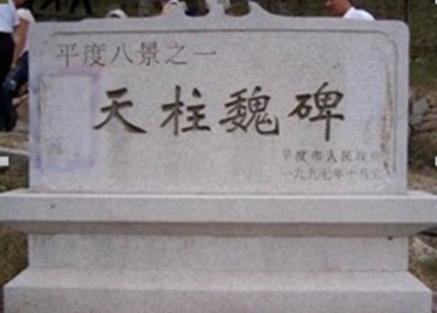 天柱山魏碑,是中国书法艺术瑰宝,国家最早公布的重点文物保护单位之一,位于平度市大泽山之右的天柱山上。天柱山,远看孤峰秀峙,高冠霄星,如柱擎天;近观鹤岭横悬,怪石突兀,云岩凌空,鸾峰直上,气势非凡。古人云:"齐之山海天下冠,而东莱之间,山水形势雄深伟丽又为齐冠,而大泽之秀又为东莱之最"。