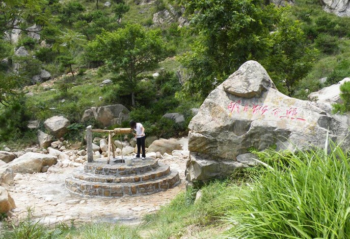 河山怪石嶙峋,峰侧断崖似刀削斧劈。沿南麓崎岖小径可攀登向上,一路风光,目不暇接。首先看到的是后时家官庄村民和石匠共同于民国七年立的“开山碑”。碑文:“以此碑为界,碑界以下不准开石,如有犯者,重加处罚。”以此可见,维持原貌,保护生态环境,在河山早就引起重视并立有戒约。前人立碑为规,至今丝毫未犯,这样有效的乡规民约的确令人钦佩。