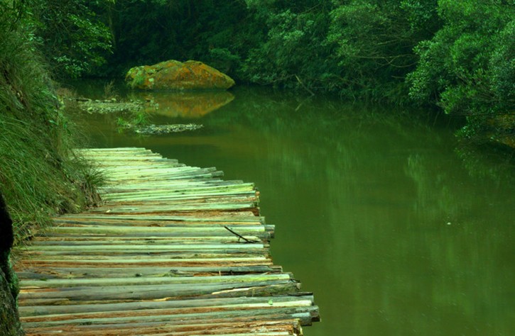 说到古道,其实我国历史上的古道有很多种。其中一种是官道、大道,比如古人灞桥送别的古道,可以行车,宽大得很;所谓“长亭外,古道边”,大概便是如此。有些是关外的大道,如阳关古道,荒凉旷远,像《阳关三叠》中的景象展现眼前。西风瘦马相伴的山野古道,小而崎岖。水项古道便是如此。 我们穿行于这条斑驳的古道上,路其实已不成为路,崎岖、坎坷。两旁茂盛的竹林显得有些黑色,同行的“驴”友说这竹子可能得了病,言语中透着股无奈与担忧。沿途我们偶尔还能看见随意废弃的小工棚,由此不难看出此处山民当年艰辛的活动足迹。零零星星的,我们还见到有山民肩扛三四根竹子不辞辛劳地往来于两地,真是想象不出当年闽侯那一侧的山民穿越古道来山脚下赶圩的情景是何等热闹。