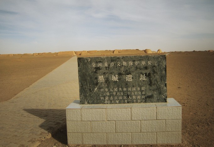 黑城遗址位于内蒙古额济纳旗达来呼布镇东南25公里处,是古丝绸之路上现存最完整、规模最宏大的一座古城遗址。该城建于公元九世纪的西夏政权时期。公元1372年明朝大将冯胜攻破黑城后遭废弃。至今城内还埋藏着丰富的西夏和元代等朝代的珍贵文书。近年来,由于周边地区沙化严重,流沙从东、西、北三面侵蚀黑城,许多遗址已埋于沙下。文物保护工作者呼吁有关部门尽快行动起来,抢救性保护黑城遗址。