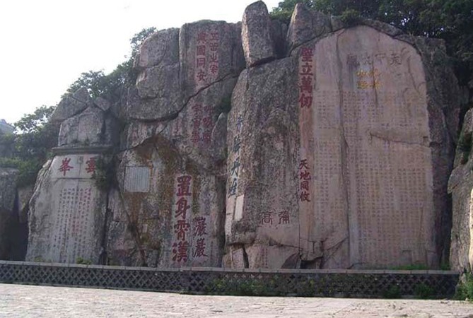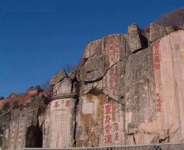 大观峰和云峰上题刻遍布,版权所有山东聊城聊之旅国际旅行社有限公司,转载必究!重重叠叠,能识者80余处。“天日苍茫”、“呼吸宇宙”、“置身霄汉”、“青碧丹崖”等大字与《纪泰山铭》辉映;唐刘仁愿、宋赵明诚、元徐世隆、明朱衡、清阮元及施闰章等历代名流题刻历历在目。