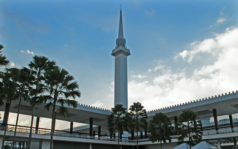 伊斯兰教是马来西亚的国教,清真寺遍布全国,吉隆坡市中心的国家清真寺,占地5.5公顷,于1965年建成,这是一组包括祈祷大厅、大尖塔、陵墓和办公大楼的建筑群,其造型和装饰与麦加的三大清真寺相仿,气势恢弘,是伊斯兰建筑艺术的杰出代表