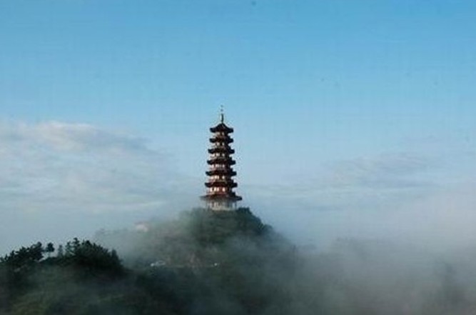 观音峰 因其山腰有一巨石极似送子观音而得名,是塔山游览区内的一处自然景观,位于塔山主峰北侧,与主峰遥相呼应。其山体虽不高,但山上奇松怪石,星罗棋布,错落有致,别有一番景色。峰顶建有一处观光亭,名为“观音亭”,在亭内凭栏远眺,可尽览市区山光水色。