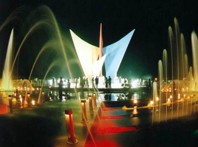 位于烟台经济技术开发区金沙滩海滨公园正门处,为一圆形阶梯状构筑,整个广场喷泉洒珠,青草滴翠,花红树绿,乌啭莺啼,使人仿佛置身天上的街市,神奇无比。北部最高点矗立着一组风帆群雕,在碧海蓝天间显现出勃勃生机,象征着开发区在改革开放的大潮中乘风破浪,一帆风顺;入夜,这里华灯齐放,灿烂辉煌,风帆通体发光,昂扬向上,寓意着光辉的前景和时代的精神。整个广场喷泉洒珠,青草滴翠,花红树绿,乌啭莺啼,使人仿佛置身天上的街市,神奇无比。