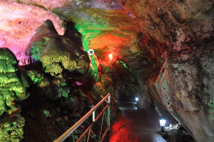 开元溶洞是一条廊道厅堂式洞穴,全长1280米,最高和最宽的地方达30米。由8个大厅组成,大小百余处景点景物供游客观赏。各厅中均各具特色的采用中国先进的电光源技术进行灯光布局,给人们带来不同的视觉效果。