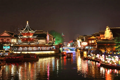“十里秦淮千年流淌,六朝胜地今更辉煌”,江泽民总书记视察时的题词,对夫子庙秦淮风光带作了生动形象的概括。
