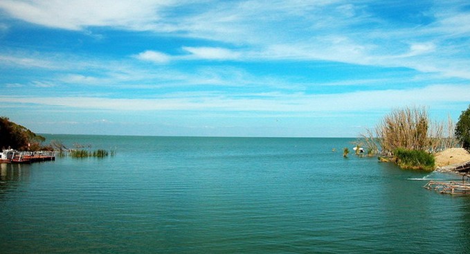 博斯腾湖面积约980平方公里,是我国最大的内陆淡水湖。 风起时波浪滔滔,宛如沧海;风静时波光潋滟,湖水连天。大湖西侧星罗棋布的小湖,湖水相通,萃草浓密,野莲成片,各种水禽栖集其间。