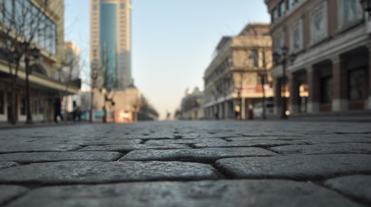1924年5月,由俄国工程师科姆特拉肖克设计、监工,中央大街铺上了方石。铺路用的方块石为花岗岩雕铸,长18厘米宽12厘米,其形状大小如俄式的小面包,一块一块,精精巧巧,密密实实,光光亮亮。路铺得这样艺术,在中外建筑史上都是少见的。据说当时一块方石的价格就值一个银元,一个银元够穷人吃一个月的。几百米的中央大街可谓金子铺成的路。据有关专家测定,中央大街的方石块还能磨上一二百年。