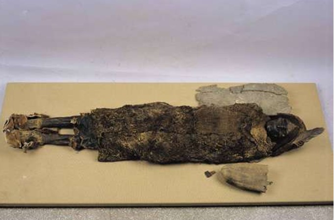 轰动一时的小河墓地出土的文物以及干尸更是让世人叹为观止,此次首次展出小河墓地的精品文物以及成年女性干尸,女尸身长 158 厘米,皮肤呈灰白色,胸乳下垂明显。头面部保存最好,窄额,宽颧骨,眼窝深凹,依稀可见眼睫毛,鼻梁尖而小巧,嘴紧闭。灰棕色头发自然中分,长至颈肩部。头发表面似用胶状物涂抹过,一缕缕粘结在一起。很难看出她生活在3800年前。