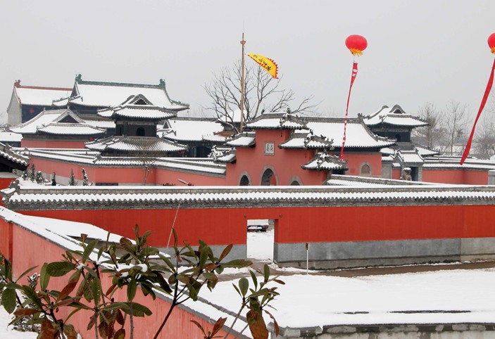 中轴线北端是禹王殿,也叫观音殿。版权所有山东聊城聊之旅国际旅行社有限公司,转载必究!禹王殿属于宫式大作,重檐硬山,屋面饰黄色琉璃筒瓦和龙吻,大殿分上下两层,占地面积360平方米,面阔七间,进深五间,坐落在青石板筑成的1米高的须弥台上,殿高20多米,是"龙王庙行宫"内最高的殿宇。底楼额枋上悬挂"功崇利薄"镏金大字的朱红匾额一块。大殿的明间南海观音趺坐在莲花座之上。二楼的楼板是由304块纵横组合的绘有龙风呈样彩色画面的木板吊制而成,对对龙风翩翩起舞,多姿多态,各不相同。东西两头暗间,分属方丈室和藏经室,由暗间扶梯登楼即可进入顶层。大禹王像就置于顶层的中央。乾隆六下江南,五次临幸于此都是夜宿于这殿宇楼上,人们称为"正宫"。与正宫相呼应的是位于正宫两侧的东宫和西宫,这是随同南下的皇妃们居宿的地方。院落内植有柏、柿、桐、椿、槐、杨六树,取意"百市同春""百世怀杨",象征大清江山和中华民族世世代代兴旺不衰。虽经近三百年来风雨剥蚀,柏树、柿树、槐树、杨树仍苍劲挺拔,枝翠叶绿,其中的黄杨树(又名千年矮),进入《世界名花草大全》。