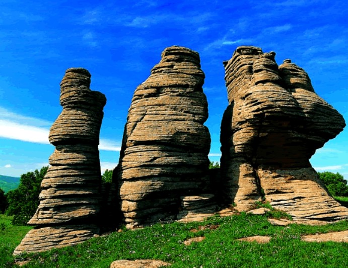石林发育类型很多,形状千姿百态,观瞻石林,有的像“石柱”、“石丛”、“石笋”,有的好似“石塔”、“石墙”,还有的像“秀女望月”、“比萨斜塔”。大兴安岭地区的冰斗、冰川U型谷、冰石河、角峰等冰川遗迹足以证明,这里第四纪冰川以来发生过冰川运动。