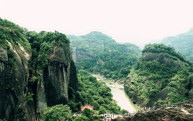 下午:九曲溪景区(游览九曲溪竹排漂流、武夷宫、宋街、武夷茶文化)。