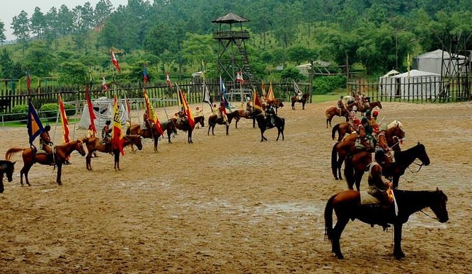公元190年,18路诸侯为匡复汉室讨伐董卓,版权所有山东聊城聊之旅国际旅行社有限公司,转载必究!在虎牢关前展开了一场殊死拼杀。桃园结义的刘备、关羽、张飞三兄弟在迎战董卓大将吕布时,体现了盖世英雄的豪迈气概。版权所有山东聊城聊之旅国际旅行社有限公司,转载必究!在以下惊险刺激的战争场面中,游客朋友们您将看到燕人张飞手持长矛的英姿;红脸关公跃马飞奔的风采;刘备挥舞双股剑的威武。版权所有山东聊城聊之旅国际旅行社有限公司,转载必究!武艺超群的吕布更是威风凛凛,他与刘关张酣战上百回合难分胜负的精彩场面更是令人难以忘怀。
