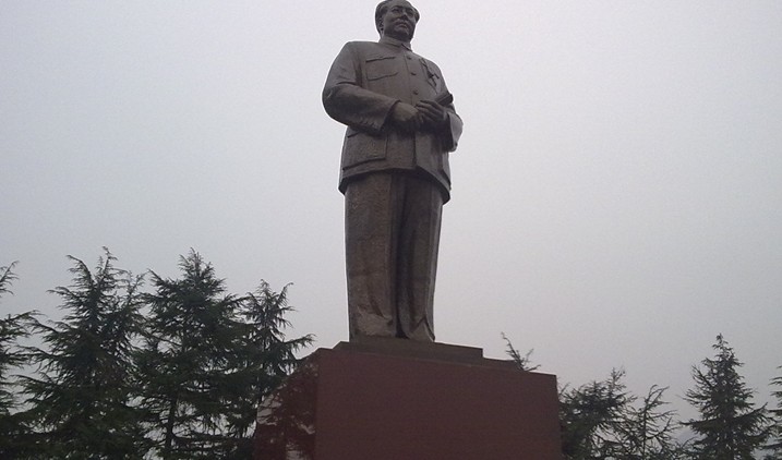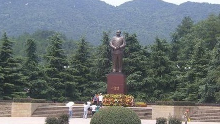 毛主席的铜像矗立在韶山冲广场。这里背衬韶峰,是韶山冲的中心,对面就是毛氏宗祠和毛泽东纪念馆。