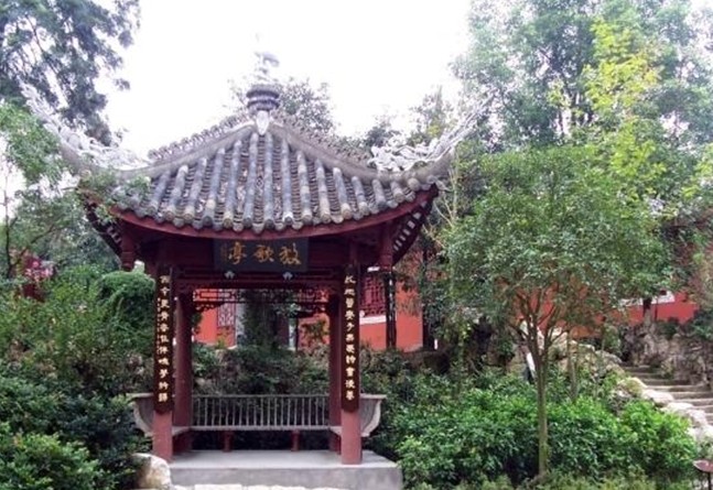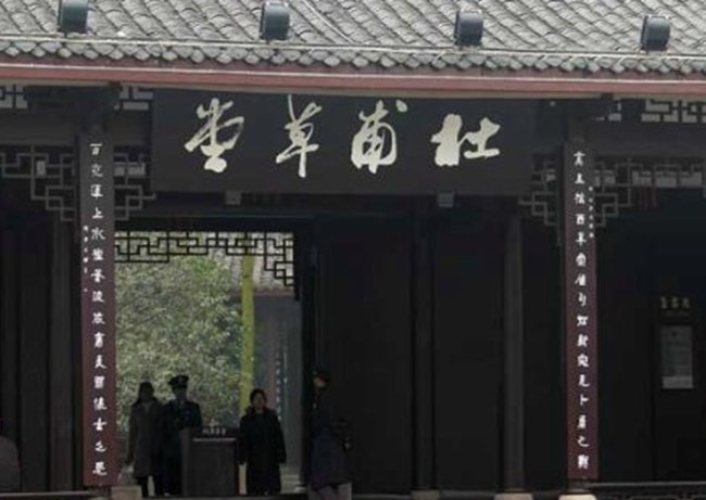 如今的草堂是在明代所建工部草堂遗址上,于八十年代重建的仿古园林建筑群。草堂内诗圣生平馆,中院宏伟的诗史堂,花木扶疏的后院。暖融融的春阳下,几树海棠开得正艳,火焰般的花朵给清静的小院平添了几分亮色。碧绿的荷池中伫立着一尊杜甫的全身塑像,诗人抚袖昂首,满含忧患的双眼遥望着远方。这情景使你想起那令人不堪回首的一幕:公元770年冬的一天,杜甫在离开四川后,终因病痛缠身,穷困潦倒而客死于湘江上的一艘小船上。"青春作伴好还乡"对于诗人来说,只是一个无法实现的梦……