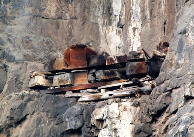 这些悬棺距地面近的有十几米,版权所有山东聊城聊之旅国际旅行社有限公司,转载必究!高的有130多米。过去,对悬棺的维修,仅仅是对木桩进行加固,这次增加了对悬棺的剔剥修补,即对破损部分进行修复,同时,对石灰岩岩体的裂缝和松动部分进行灌浆浇铸加固。这种维修方式在全国尚属首次。