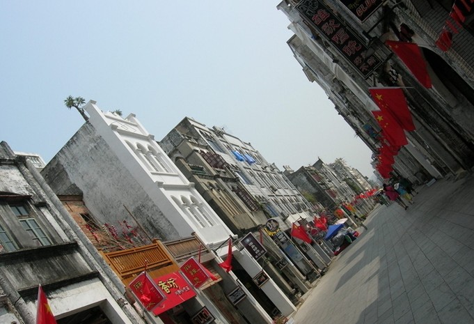 北海老街——珠海路是一条有一百多年历史的老街,始建于1883年,长1.44公里,宽9米,沿街全是中西合璧骑楼式建筑。这些建筑大多为二至三层,主要受19世纪末叶英、法、德等国在我市建造的领事馆等西方卷柱式建筑的影响,临街两边墙面的窗顶多为卷拱结构,卷拱外沿及窗柱顶端都有雕饰线,线条流畅、工艺精美。临街墙面部不同式样的装饰和浮雕形成了南北两组空中雕塑长廊。这些建筑临街的骑楼部分,既是道路向两侧的扩展又是铺面向外部的延伸,人们行走在骑楼下,既可遮风挡雨又可躲避烈日;骑楼的方形柱子粗重厚大,颇有古罗马建筑的风格。