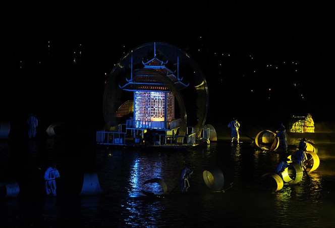 方圆两公里的阳朔书童山段漓江水域,十二座背景山峰,广袤无际的天穹,构成迄今世界上最大的山水剧场。投资建造的目前国内最大规模的环境艺术灯光工程及独特的烟雾效果工程,创造出如诗如梦的视觉效果。传统演出是在剧院有限的空间里进行,这场演出则以自然造化为实景舞台,放眼望去,版权所有山东聊城聊之旅国际旅行社有限公司,转载必究!漓江的水,桂林的山,化为中心的舞台,给人宽广的视野和超然的感受。传统的舞台演出,是人的创作,而"山水实景演出"是人与上帝共同的创作。山峰的隐现、水镜的倒影、烟雨的点缀、竹林的轻吟、月光的披洒随时都会进入演出,成为美妙的插曲。晴天的漓江,清风倒影特别迷人;可烟雨漓江,赐给人们的却是另外一种美的享受;细雨如纱,飘飘沥沥;云雾缭绕,似在仙宫,如入梦境……演出正是利用晴、烟、雨、雾、春、夏、秋、冬不同的自然气候,创造出无穷的神奇魅力,使那里的演出每场都是新的。