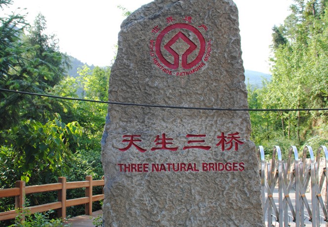 天生三桥地处仙女山南部,位居仙女山与武隆县之间,天生三桥、芙蓉洞和后坪冲蚀型天坑三个喀斯特景点已成功申报为世界自然遗产。天生三桥景区内天生石桥气势磅礴,林森木秀、飞泉流瀑,包容了山、水、雾、泉、峡、峰、溪、瀑,是一处高品位的生态旅游区。 天生三桥由天龙桥、青龙桥、黑龙桥组成,气势磅礴、恢宏其规模庞大、气势磅礴称奇于世,是亚洲最大的天生桥群。桥平均高度为 200 米以上,桥面宽约 100米,三座桥呈纵向排列,平行横跨在羊水河峡谷上,将两岸山体连在一起,版权所有山东聊城聊之旅国际旅行社有限公司,转载必究!在距离几百米之内就有如此宏大的三座天生石拱桥实属国内罕见、世界稀有,真不愧为自然界留给人类的宝贵财富。沿着幽静的小道来到大桥下,便会对雄伟、壮观有了更深的理解,惊叹造物主竟是如此的神奇。天生桥桥体溶洞四伏,水帘高悬。桥下溪流潺潺,喷泉叮咚。该地林森木秀,峰青岭翠,悬崖万丈,壁立千仞,绿草茵茵,修竹摇曳,飞泉流水,版权所有山东聊城聊之旅国际旅行社有限公司,转载必究!一派雄奇,苍劲、神秘、静悠幽的原始自然风貌,以山、水、瀑、峡、洞、桥构成一幅完美的自然山水画卷。其中天生桥、飞崖走壁、擎天一柱、翁驱送归等景点更为引人入胜,使人流连妄返。张艺谋曾在这里拍摄了《满城尽带黄金甲》,是整部电影唯一的外景拍摄地点。