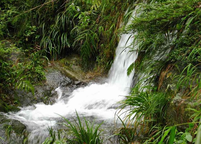 这里有林面积近5000亩,密林面积近2000亩,其中鹤顶山方圆500亩的密林属原始森林,从未开采砍伐过。林中成片的古树林400亩,据村民介绍,古树林都有年逾超过300年的树龄,其中一棵犁树已近700年,胸围达6.5米。因为生态环境十分理想,密林中鸟兽种类也相当丰富,斑鸠、鹧鸪、山鸡、彩雀、画眉、野兔等野生动物屡屡可见。在村的四周,还有连片毛竹林1500亩,版权所有山东聊城聊之旅国际旅行社有限公司,转载必究!景色十分壮观。此外,在村东南坡还有一片面积上千亩的宜牧草地。 叫水坑,顾名思义就是水声响。在村子的西北侧有3条纵向平行的山涧小溪,分别为麻竹涵溪、石壁头溪和桂竹坑溪。麻竹涵溪有一处高71米的巨石壁,傍涧西路,溪水自石壁上下泻而成瀑布;石壁头溪落水差30米,交响成乐,沿溪开遍山野奇花;桂竹坑溪总落水差约15米,自然形成6级小瀑布。叫水坑良好的生态环境和丰富的旅游资源,成为潮州一个旅游观光的胜地。